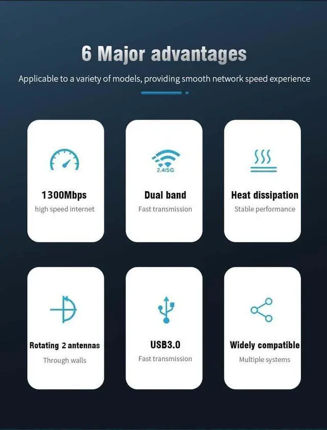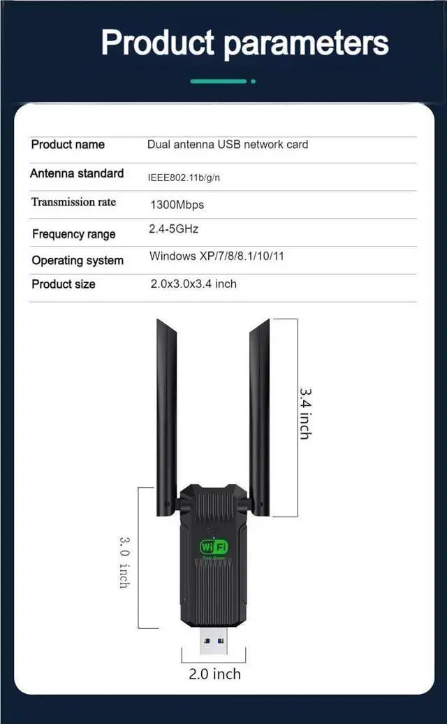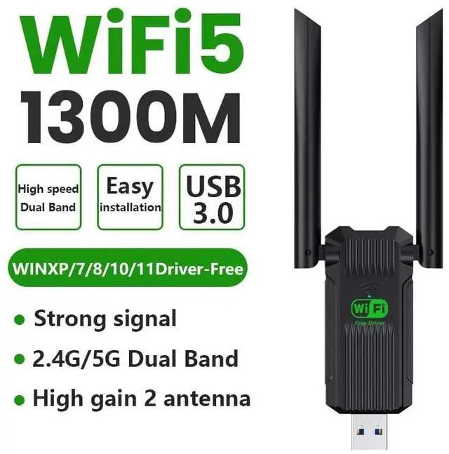 USB wifi adapter with 1300Mbps high wifi speed, faster transmission rate than other WiFi adapters, WiFi speed can reach 867Mbps in 5GHz band and 300Mbps in 2.4GHz band,Upgrade your PCs or laptops to 802.11b standardsIt will bring you a special high -speed and smooth experience.