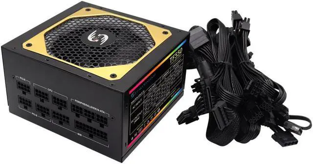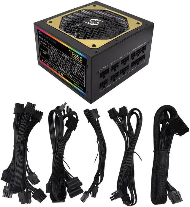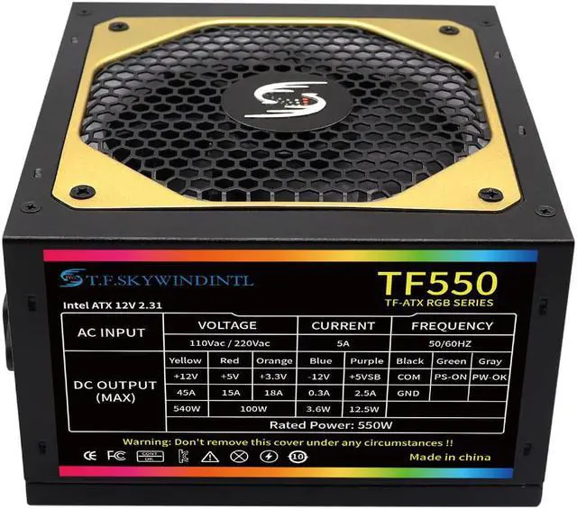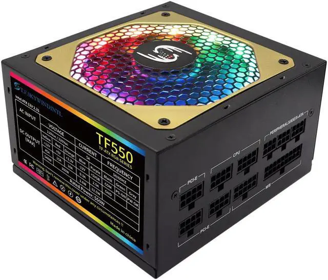 - RGB 550w ATX power supply. Delivers rate 550 watt continuous output. max power can reach 600W.