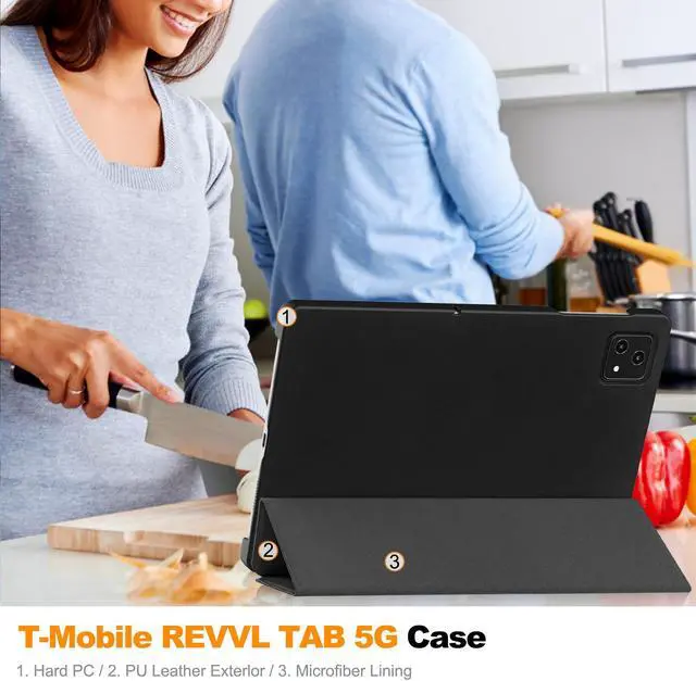 with Auto Wake Sleep Function: Magnetic closure, automatically wakes or puts your Revvl Tab 5G tablet to sleep when the lid is opened and closed.