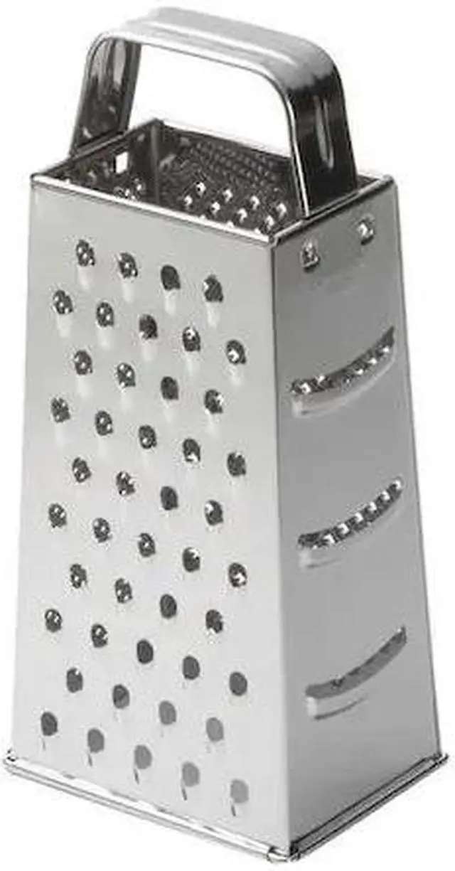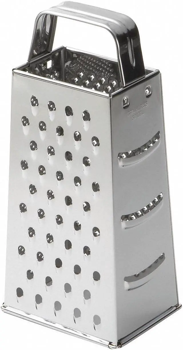 Tapered Box Grater, Overall Length 4 in, Handle Material Stainless Steel, Cut Type Coarse, Fine, Medium, Plane, Dishwasher Safe Yes, Handle Color Silver, Product Type Tapered Box Grater, Blade Material Stainless Steel, Overall Width 3 1/4 in, NSF Certified No. This item has been restricted from sale in the following state (s): []