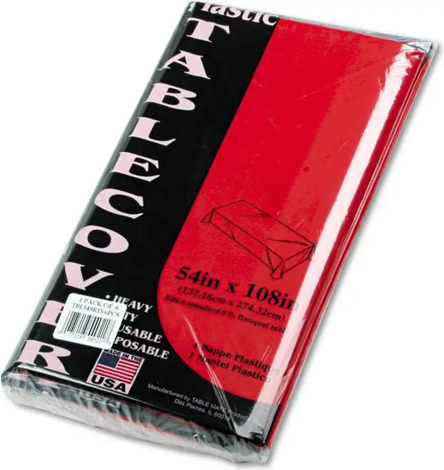 Tablemate Table Set Rectangular Table Cover Heavyweight Plastic 54 x 108 Red 6