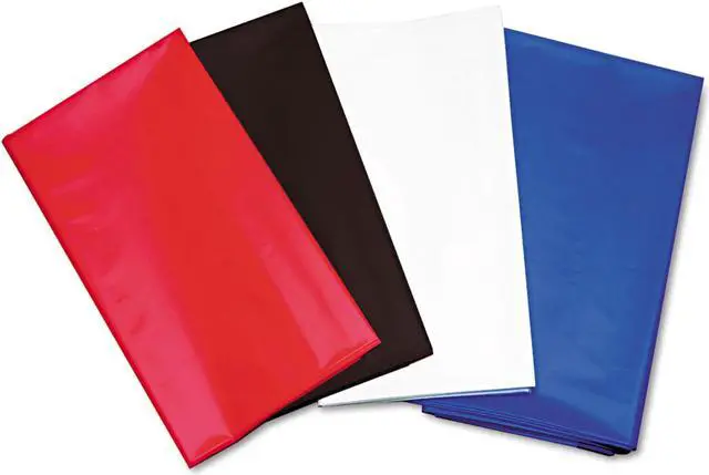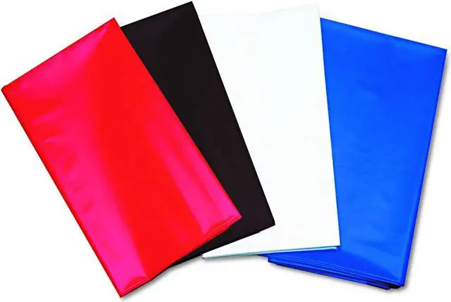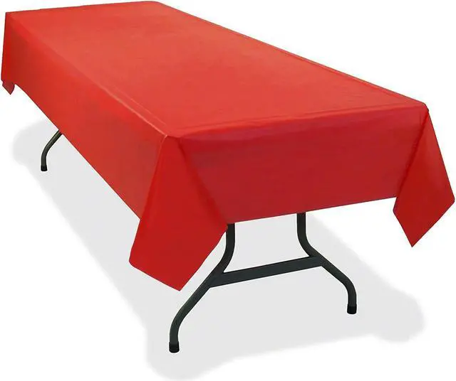 Heavyweight plastic tablecloths help protect tabletop from spills while adding a little color to your table setting. Reusable and disposable. Each 54" x 108" tablecloth fits one banquet-size table or two card tables for plenty of seating space.