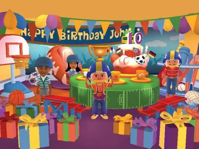 | Features | Up to 12 party goers can join in the festivities as they whack , roll, splash, pop, scribble, climb, jump, and shimmy their way through more than 20 birthday games, including pinata blast, duncan hines cake stacker, present frenzy and birthday blow out. |