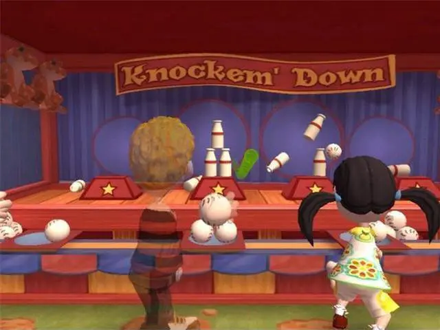 Try to win a goldfish or a giant stuffed bear by throwing balls into too-small baskets and rings onto too-big bottles in this collection of classic carnival games.