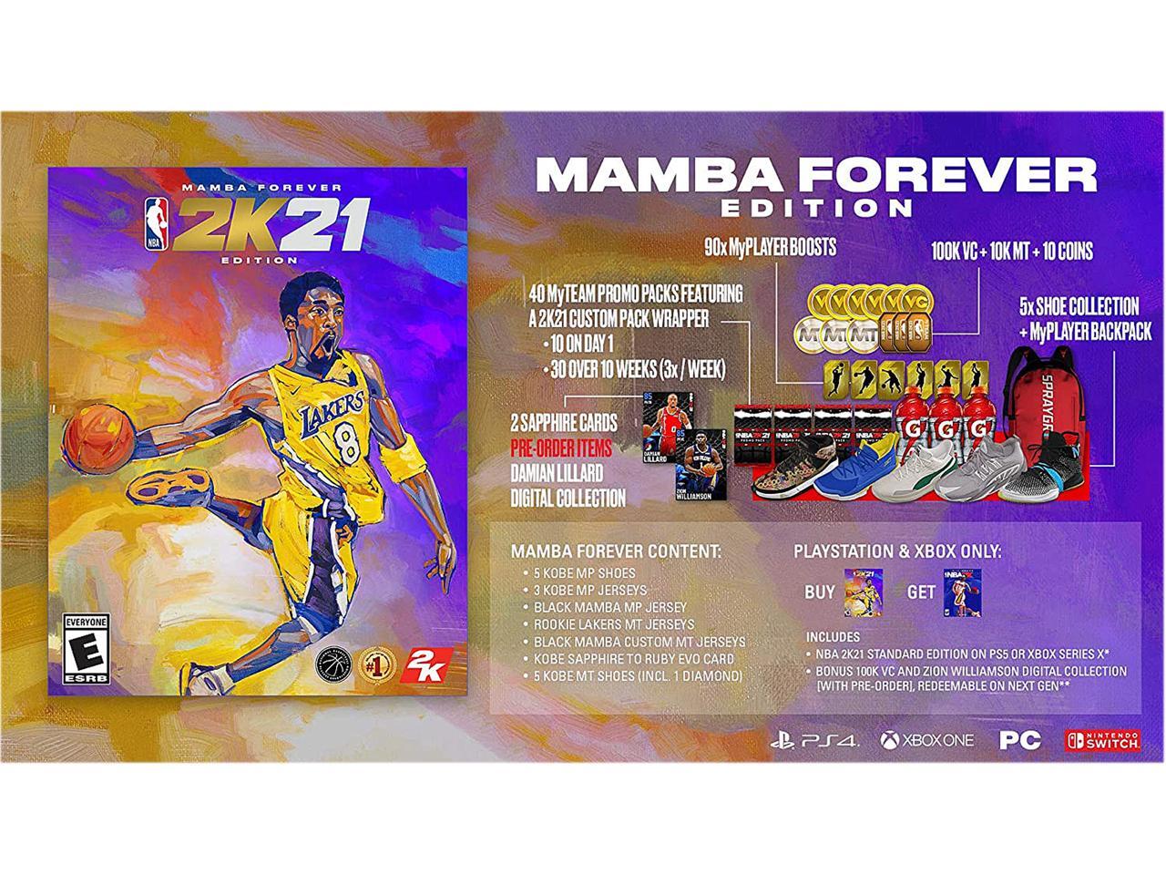 Physical copies of NBA 2K21 Mamba Forever Edition for Xbox One will include a digital copy of NBA 2K21 Standard Edition for Xbox Series X in box.