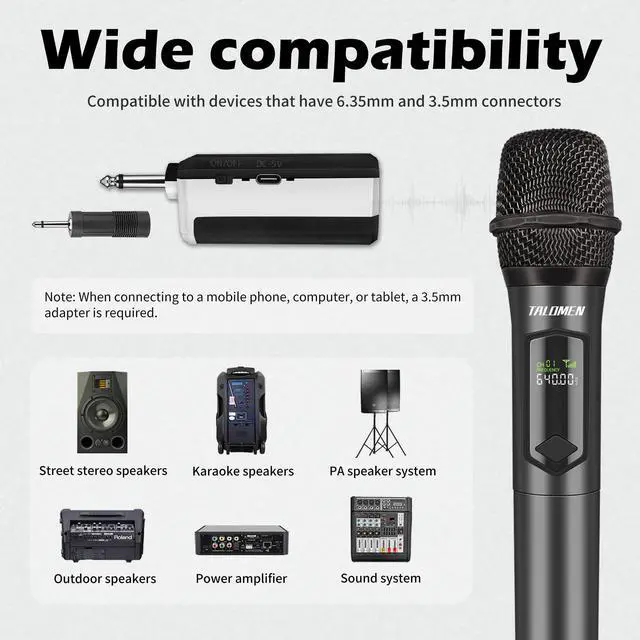 Disclaimer: This is NOT a Bluetooth microphone-the receiver must be connected to a device with microphone port with a 6.35 mm diameter.