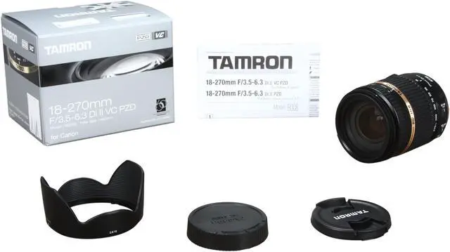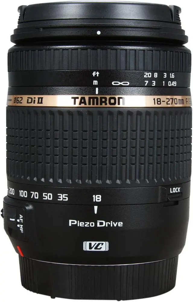 Compact and Easy to Carry 15X All-in-One Zoom with Outstanding Feature SetThe 18-270mm Di II VC PZD boasts the world’s highest zoom range at 15x magnification for a lens with its compact size and light weight (Current as of December 2010, Source: Tamron). At 15.9 ounces, measuring 3.8 inches in length (from mount face to the tip of the lens), and 2.9 inches in diameter with a filter diameter of Ø62mm, it’s a compact and easy-to-carry lens. Its minimum focal distance of 0.49m (19.3 in) through the entire zoom range and macro capability to 1:3.8 allows you to enjoy serious, high-quality macro photography with unaccustomed convenience.