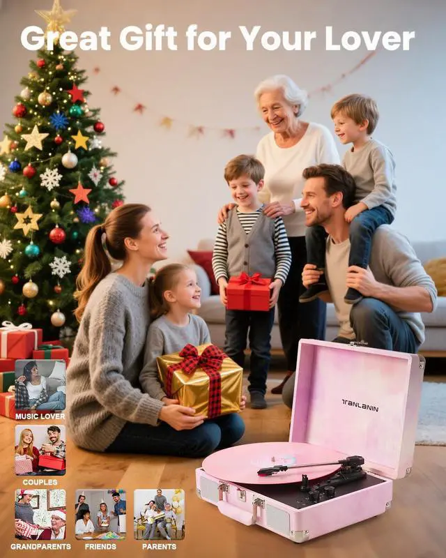 The turntable base is designed with a spring and belt drive, equipped with an Auto Stop function and damping lift, which will greatly absorb vibrations, provide you with quality & smooth music, and protect your record from being rubbed by the stylus.