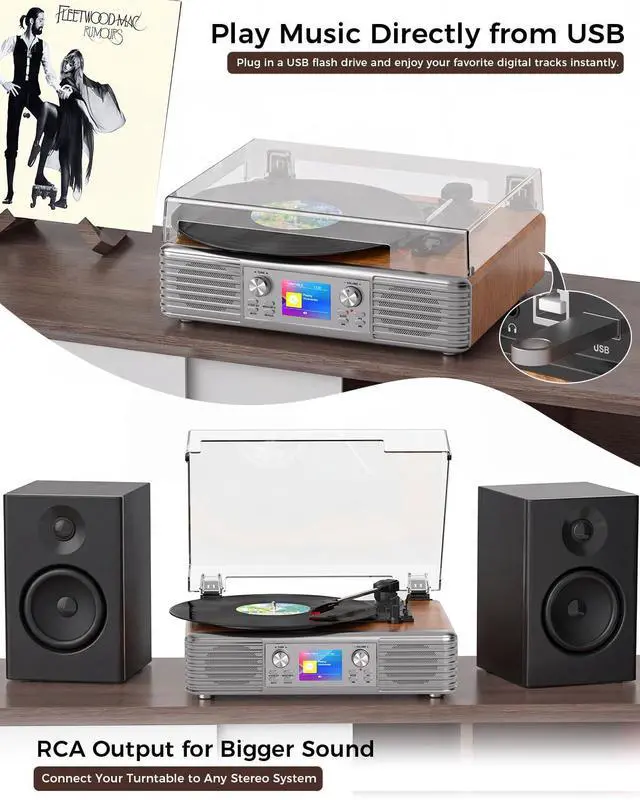 The built-in LCD screen keeps playback status clear at a glance, while thoughtfully arranged ports make connecting your devices simple and intuitive for everyday listening.