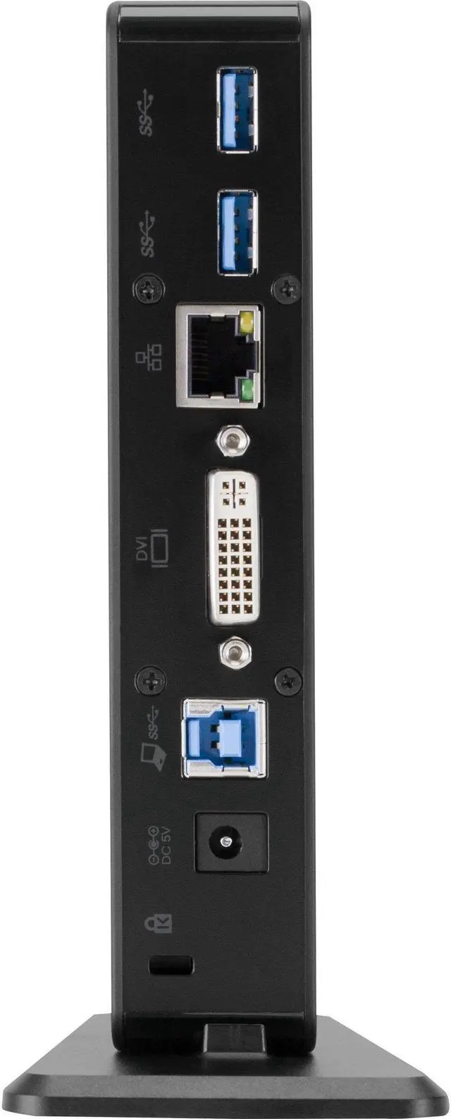 Enjoy an increase in speed and more power by utilizing the latest USB 3.0 technology for your workstation. The Targus Universal USB 3.0 DV Docking Station offers a single video port that delivers beyond HD video and graphics up to 2048 x 1152 (DVI-I). In addition it includes a DVI-I to VGA adapter and 3 USB 3.0 ports for your USB 3.0 peripherals. The docking station also includes a Gigabit Ethernet port and audio in/out ports to connect speakers. An AC adapter and 2ft USB 3.0 cable are also included to help make it easy to connect your device into a complete workstation environment.