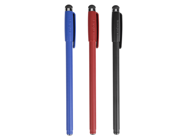 Targus Antimicrobial Stylus & Pen (3 Pack) - 3 Pack - Rubber - Black, Red, Blue - AMM0601TBUS