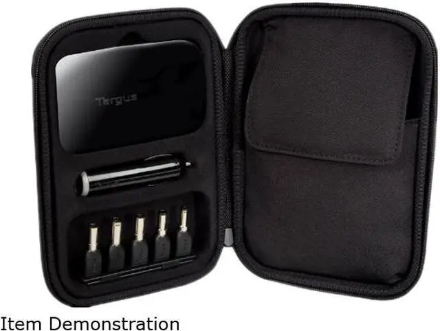 The Targus Laptop Charger is half the size and weight of typical AD/DC chargers and is about the size of a blackberry. As the smallest adapter on the market, this AC charger includes 9 laptop tips, a mini-USB tip and micro-USB tip for cell phones, cameras and other devices in addition to an iPod/iPhone/iPad tip. Easily power or charge a laptop and one additional item such as a Blackberry or iPod at the same time. For added convenience the charger plugs directly into the wall and the AC prongs rotate 180 degrees, allowing the user to plug the charger into a power strip without blocking other outlets. The prongs also lie flat for added portability. To charge or power multiple devices in the car or on a plane, the charger includes a portable auto adapter. The thin, lightweight cord packs quickly and easily and includes a cord wrap for convenient travel. The tip clip attaches to the power cord so tips stay with the charger and are readily available when needed.