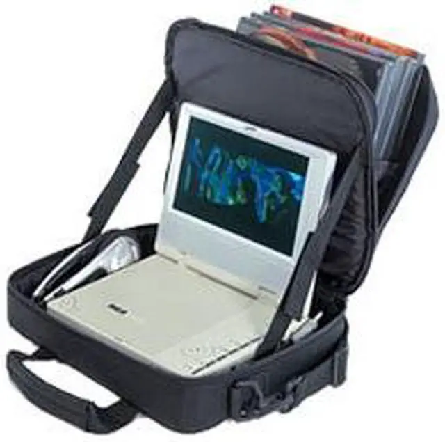 The Sport Portable DVD Player Case offers you a secure storage solution for your portable DVD player. This Sport Case holds up to a 9 inch DVD player while allowing you to use the player without removing it from the case. The case features non-woven pockets that hold up to 8 DVD disks and an external zippered pocket to hold accessories like power cords and headphones. And your DVD player is secured in place by a security strap along with extra padding for added protection. There's even a handy adjustable suspension shoulder strap for easy carrying.