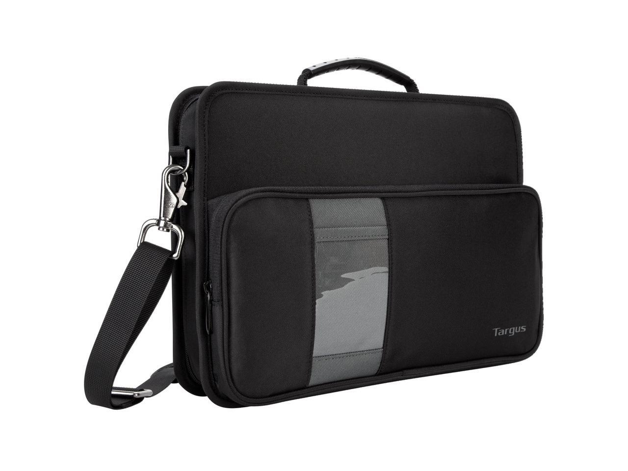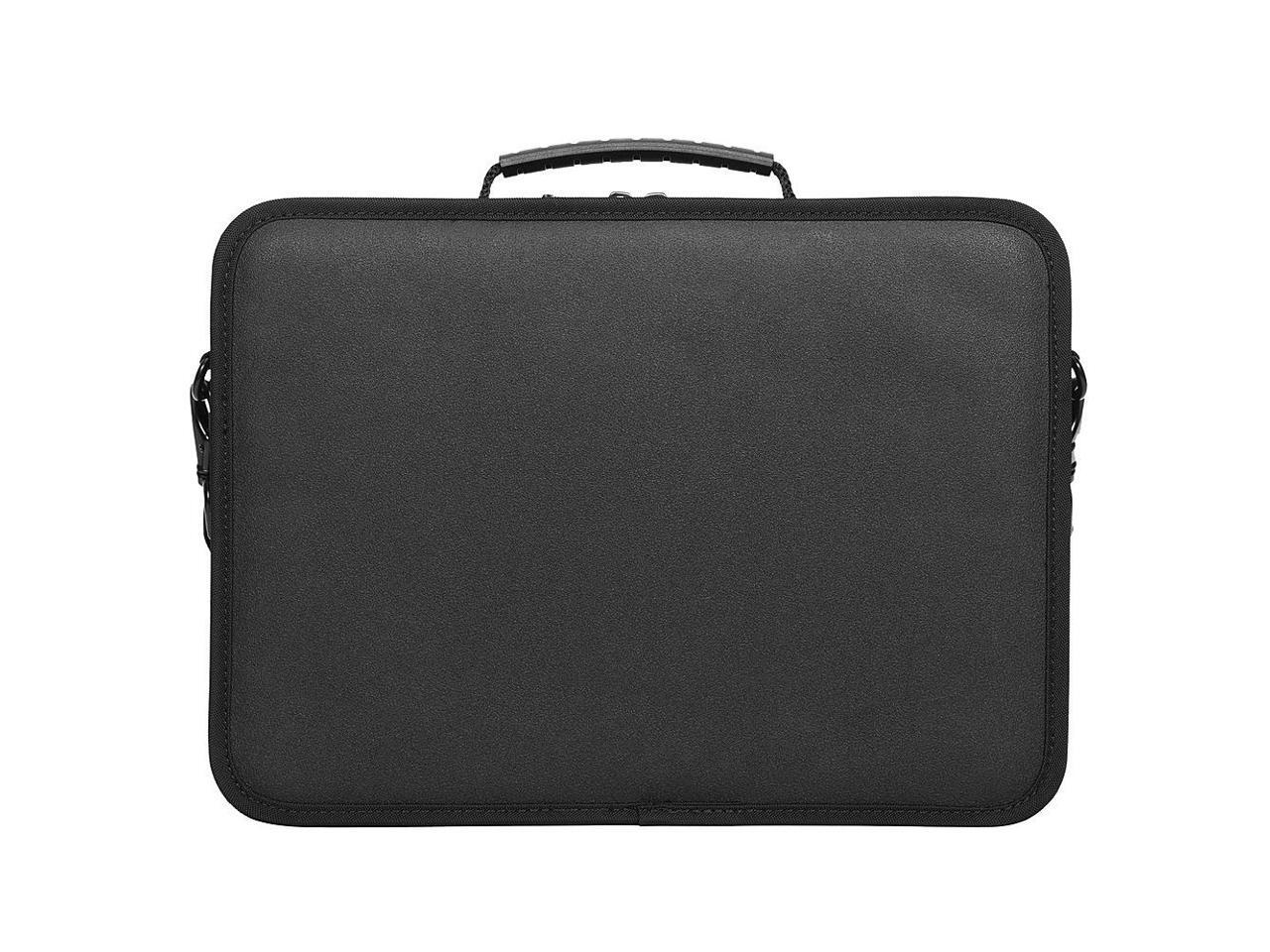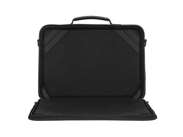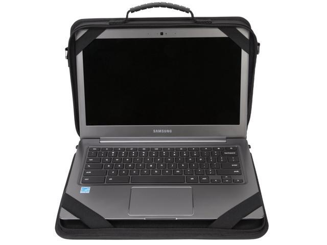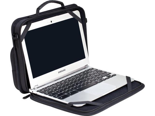 - Sturdy elastic straps anchor device in case; unzip to start workingDurable 900D polyester hard-sided outer shell with rigid border protects from 30 drops*Rugged non-skid base helps keep your work in placeFront pocket with ID holder stores power adapters and accessoriesPadded, adjustable shoulder strap and sturdy carrying handleSoft-touch lining protects device from scuffsDurable metal hardwareFits most 11.6 Chromebook computers and other notebooksWeight: 1.58 lbsDimensions: 13.00" x 10.75" x 2.50" (W x H x D)Laptop Compartment: 11.83" x 8.57" (W x H)