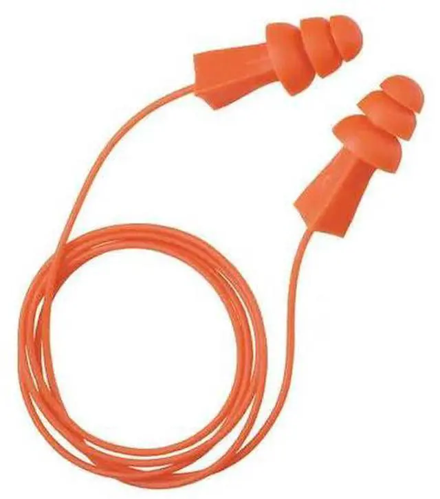 Ear Plugs, Noise Reduction Rating 27 dB, Earplug Shape Flanged, Insertion Method Push-In, Reusability Reusable, Cord Options Corded, Earplug Size Universal, Earplug Material Vinyl, Earplug Packaging Bulk Box, Earplug Pair Pack Type Plastic Bag, Band Color Orange, Series Tri-Grip, Cord Material PVC, Band Material PVC, Cord Color Orange, Standards ANSI S 3.19 -1974, Pairs per Package 100, Earplug Color Orange, Metal Detectable No, Package Quantity 100. This item has been restricted from sale in the following state (s): []