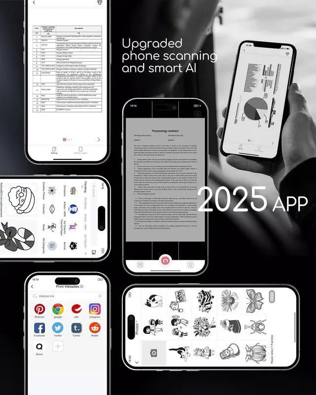 • Portable Printers Wireless for Travel [Compact & Space-saving]: Portable printer built-in high-capacity rechargeable battery, print 160 sheets of 8.5'' x 11'' thermal paper per charge. Weighs only 1.5lb and is small in size. This inkless portable printer fits easily into a backpack or briefcase! Ideal for on-the-go printing during business travel, in car or truck, small office, construction site, school and home use. You can print documents, contracts, invoices, receipts and boarding passes anytime, anywhere