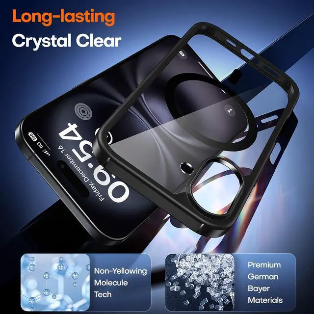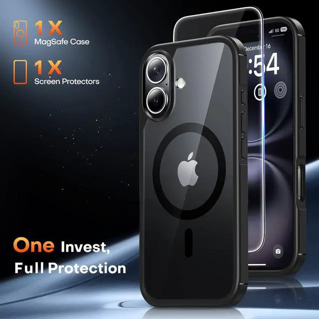for iPhone 16 Case, Compatible with MagSafe [Anti-Yellowing] with Screen Protectors, Military-Grade Protection, Shockproof Slim Magnetic Phone Case for iPhone 16 6.1", Black