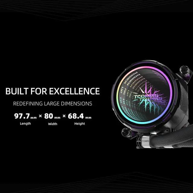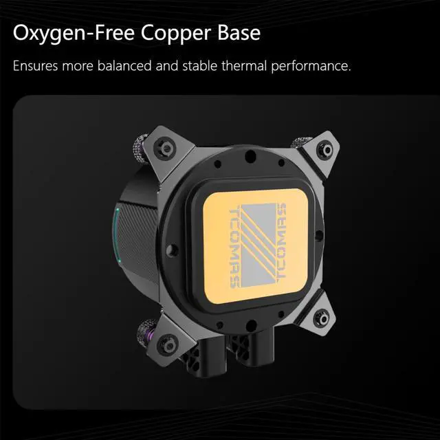The TCOMAS LA200 360 AIO Liquid CPU Cooler introduces a new dimension of elegance and performance. Its oversized mirror cold head features electroplated tempered glass that beautifully reflects ambient lighting while maintaining a futuristic aesthetic. A magnetic detachable design ensures effortless installation and cleaning, while ARGB lighting with a precision light-guiding layer delivers vibrant yet smooth illumination.
