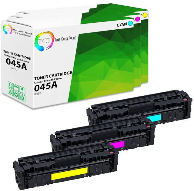 TCT offers quality Canon 045 045C 045M 045Y compatible replacement cartridges that fit effortlessly into your printer. You will find crisp, clear prints with consistently dark tones and sharp images in every single print job. Get professional quality prints every time and save a bundle with True Color Toners high quality printing supplies!