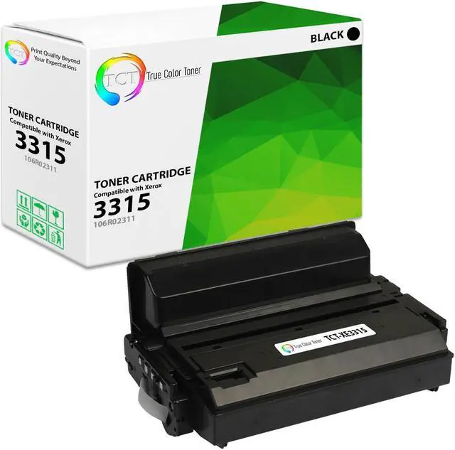 TCT offers quality Xerox 3315 106R02311 compatible replacement cartridges that fit effortlessly into your printer. You will find crisp, clear prints with consistently dark tones and sharp images in every single print job. Get professional quality prints every time and save a bundle with True Color Toners high quality printing supplies!