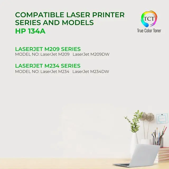 TCT offers quality HP 134A W1340A compatible replacement cartridges that fit effortlessly into your printer. You will find crisp, clear prints with consistently dark tones and sharp images in every single print job. Get professional quality prints every time and save a bundle with True Color Toners high quality printing supplies!