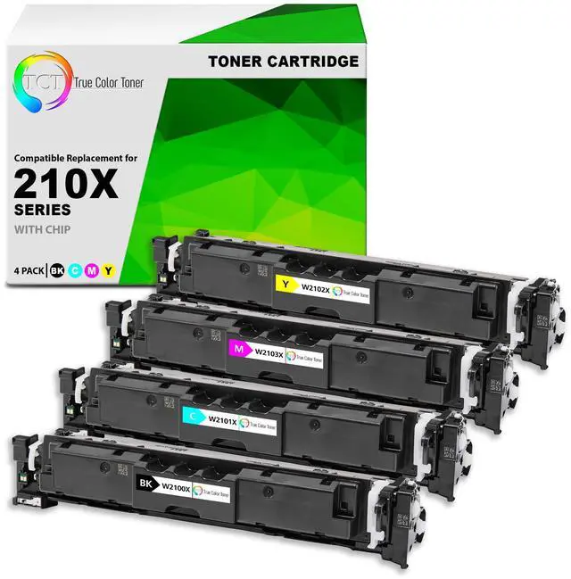 TCT offers quality HP 210X W2100X W2101X W2102X W2103X High Yield compatible replacement cartridges that fit effortlessly into your printer. You will find crisp, clear prints with consistently dark tones and sharp images in every single print job. Get professional quality prints every time and save a bundle with True Color Toners high quality printing supplies!