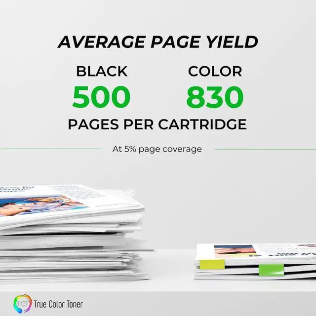 - Page Yield: 500 pages per black cartridge and 830 pages per color cartridge
