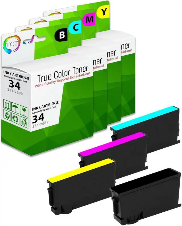 TCT offers quality Dell 34 Series 331-7689 331-7690 331-7691 331-7692 compatible replacement cartridges that fit effortlessly into your printer. You will find crisp, clear prints with consistently dark tones and sharp images in every single print job. Get professional quality prints every time and save a bundle with True Color Toners high quality printing supplies!