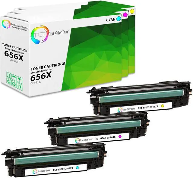 TCT offers quality HP 656X CF461X CF462X CF463X High Yield compatible replacement cartridges that fit effortlessly into your printer. You will find crisp, clear prints with consistently dark tones and sharp images in every single print job. Get professional quality prints every time and save a bundle with True Color Toners high quality printing supplies!