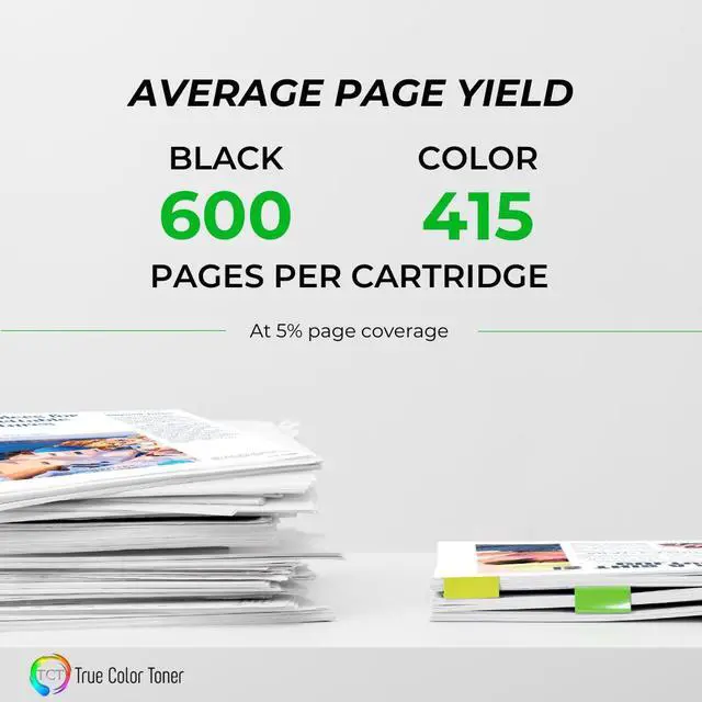 - Page Yield: 600 pages per Black and 415 per color cartridge