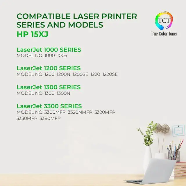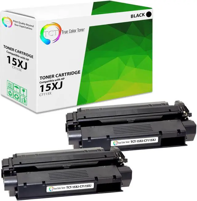TCT offers quality HP 15XJ C7115X High Yield compatible jumbo yield replacement cartridges that fit effortlessly into your printer. You will find crisp, clear prints with consistently dark tones and sharp images in every single print job. Get professional quality prints every time and save a bundle with True Color Toners high quality printing supplies!