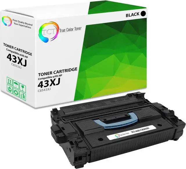 TCT offers quality HP 43XJ C8543X compatible jumbo yield replacement cartridges that fit effortlessly into your printer. You will find crisp, clear prints with consistently dark tones and sharp images in every single print job. Get professional quality prints every time and save a bundle with True Color Toners high quality printing supplies!