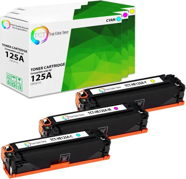 TCT offers quality HP 125A CB541A CB542A CB543A compatible replacement cartridges that fit effortlessly into your printer. You will find crisp, clear prints with consistently dark tones and sharp images in every single print job. Get professional quality prints every time and save a bundle with True Color Toners high quality printing supplies!