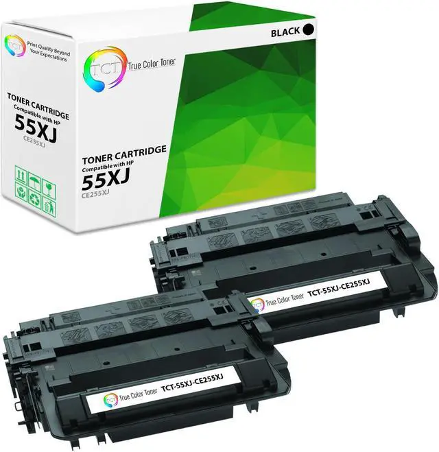 TCT offers quality HP 55XJ CE255X High Yield compatible jumbo yield replacement cartridges that fit effortlessly into your printer. You will find crisp, clear prints with consistently dark tones and sharp images in every single print job. Get professional quality prints every time and save a bundle with True Color Toners high quality printing supplies!