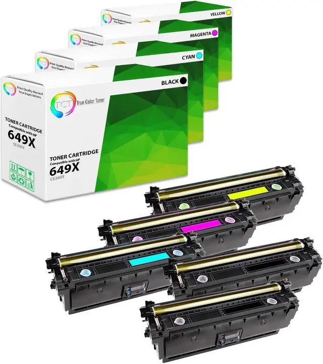 TCT offers quality 649X CE260X CE261A CE262A CE263A High Yield compatible replacement cartridges that fit effortlessly into your printer. You will find crisp, clear prints with consistently dark tones and sharp images in every single print job. Get professional quality prints every time and save a bundle with True Color Toners high quality printing supplies!