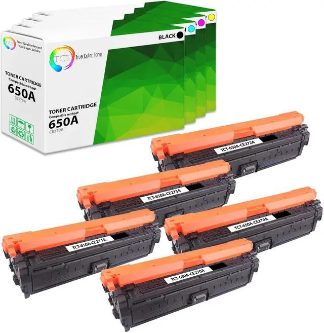 TCT offers quality 650A CE270A CE271A CE272A CE273A compatible replacement cartridges that fit effortlessly into your printer. You will find crisp, clear prints with consistently dark tones and sharp images in every single print job. Get professional quality prints every time and save a bundle with True Color Toners high quality printing supplies!