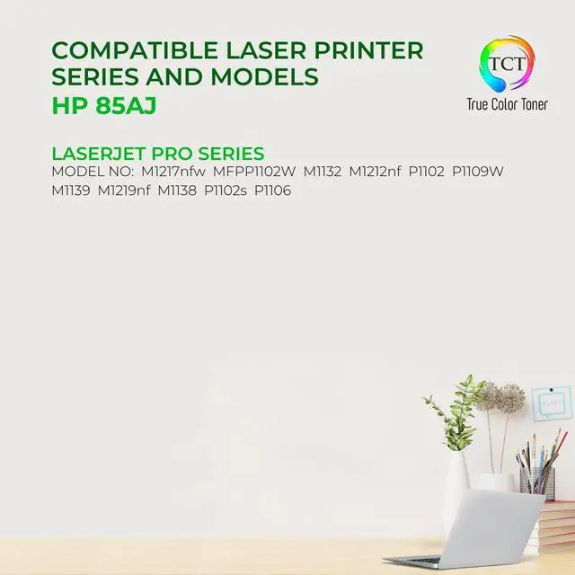 TCT offers quality HP 85AJ CE285A compatible jumbo yield replacement cartridges that fit effortlessly into your printer. You will find crisp, clear prints with consistently dark tones and sharp images in every single print job. Get professional quality prints every time and save a bundle with True Color Toners high quality printing supplies!