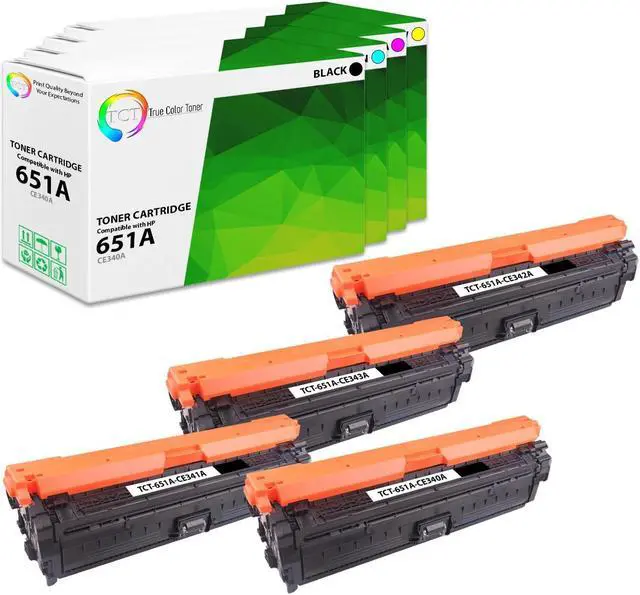 TCT offers quality HP 651A CE340A CE341A CE342A CE343A compatible replacement cartridges that fit effortlessly into your printer. You will find crisp, clear prints with consistently dark tones and sharp images in every single print job. Get professional quality prints every time and save a bundle with True Color Toners high quality printing supplies!
