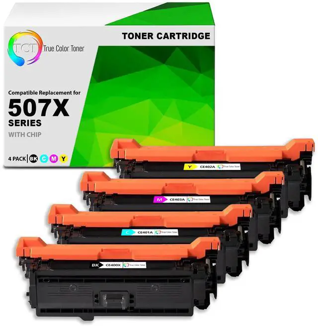 TCT offers quality 507X CE400X CE401A CE402A CE403A compatible replacement cartridges that fit effortlessly into your printer. You will find crisp, clear prints with consistently dark tones and sharp images in every single print job. Get professional quality prints every time and save a bundle with True Color Toners high quality printing supplies!