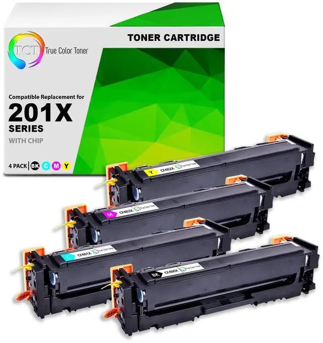 TCT offers quality 201X CF400X CF401X CF402X CF403X High Yield compatible replacement cartridges that fit effortlessly into your printer. You will find crisp, clear prints with consistently dark tones and sharp images in every single print job. Get professional quality prints every time and save a bundle with True Color Toners high quality printing supplies!