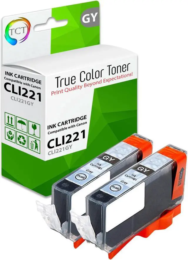 TCT offers quality Canon CLI-221 CLI221GY compatible replacement cartridges that fit effortlessly into your printer. You will find crisp, clear prints with consistently dark tones and sharp images in every single print job. Get professional quality prints every time and save a bundle with True Color Toners high quality printing supplies!