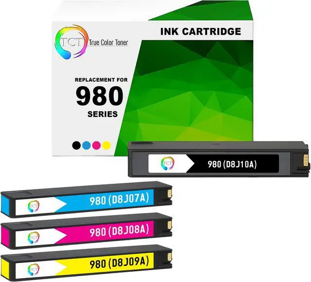 TCT offers quality HP 980 D8J10A D8J07A D8J08A D8J09A compatible replacement cartridges that fit effortlessly into your printer. You will find crisp, clear prints with consistently dark tones and sharp images in every single print job. Get professional quality prints every time and save a bundle with True Color Toners high quality printing supplies!