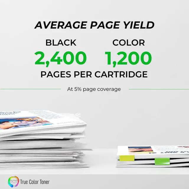 - Page Yield: 2400 pages per Black cartridge and 1200 per Color cartridge