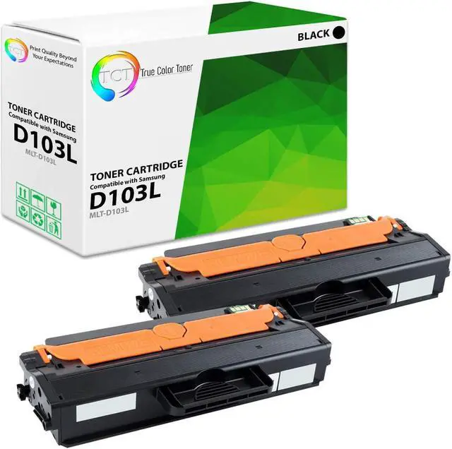 TCT offers quality Samsung MLTD103L MLT-D103L High Yield compatible replacement cartridges that fit effortlessly into your printer. You will find crisp, clear prints with consistently dark tones and sharp images in every single print job. Get professional quality prints every time and save a bundle with True Color Toners high quality printing supplies!