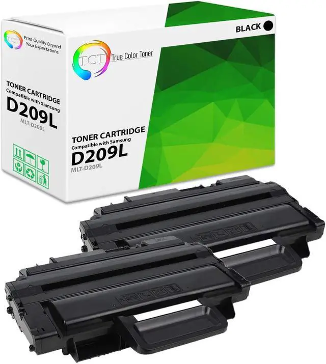 TCT offers quality Samsung MLTD209L MLT-D209L High Yield compatible replacement cartridges that fit effortlessly into your printer. You will find crisp, clear prints with consistently dark tones and sharp images in every single print job. Get professional quality prints every time and save a bundle with True Color Toners high quality printing supplies!
