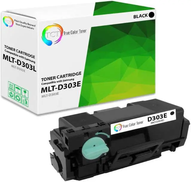 TCT offers quality Samsung MLTD303E MLT-D303E compatible replacement cartridges that fit effortlessly into your printer. You will find crisp, clear prints with consistently dark tones and sharp images in every single print job. Get professional quality prints every time and save a bundle with True Color Toners high quality printing supplies!