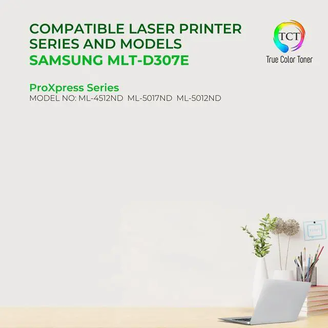TCT offers quality Samsung MLTD307E MLT-D307E Extra High Yield compatible replacement cartridges that fit effortlessly into your printer. You will find crisp, clear prints with consistently dark tones and sharp images in every single print job. Get professional quality prints every time and save a bundle with True Color Toners high quality printing supplies!
