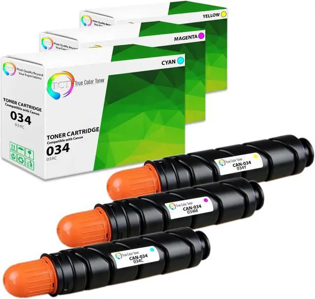 TCT offers quality Canon 34 034C 034Y 034M compatible replacement cartridges that fit effortlessly into your printer. You will find crisp, clear prints with consistently dark tones and sharp images in every single print job. Get professional quality prints every time and save a bundle with True Color Toners high quality printing supplies!