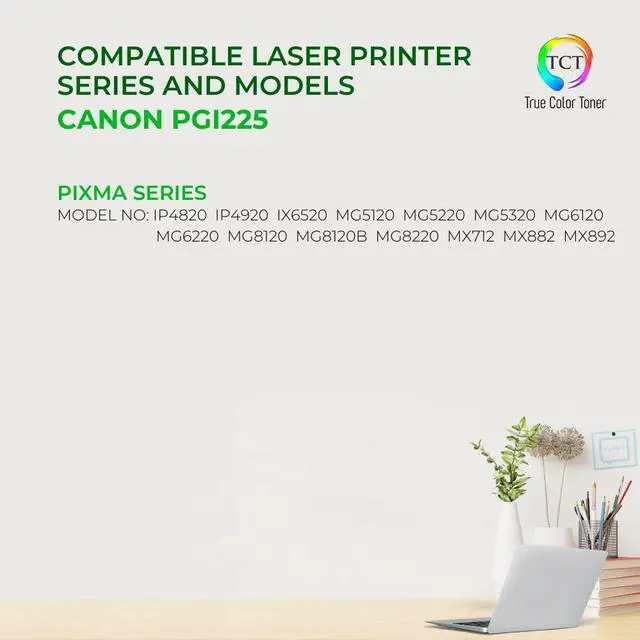 TCT offers quality Canon PGI-225 PGI225PB compatible replacement cartridges that fit effortlessly into your printer. You will find crisp, clear prints with consistently dark tones and sharp images in every single print job. Get professional quality prints every time and save a bundle with True Color Toners high quality printing supplies!