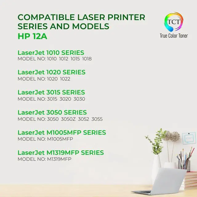 TCT offers quality HP 12A Q2612A compatible replacement cartridges that fit effortlessly into your printer. You will find crisp, clear prints with consistently dark tones and sharp images in every single print job. Get professional quality prints every time and save a bundle with True Color Toners high quality printing supplies!